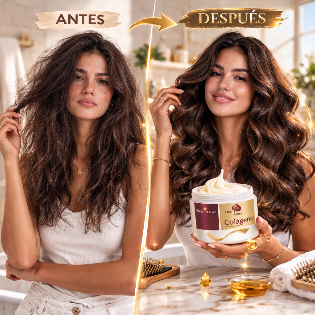 Mascarilla capilar con colágeno y aceite de argán marroquí, repara en profundidad, reduce el quiebre y deja tu melena más suave, brillante y fuerte desde la primera aplicación. ✨